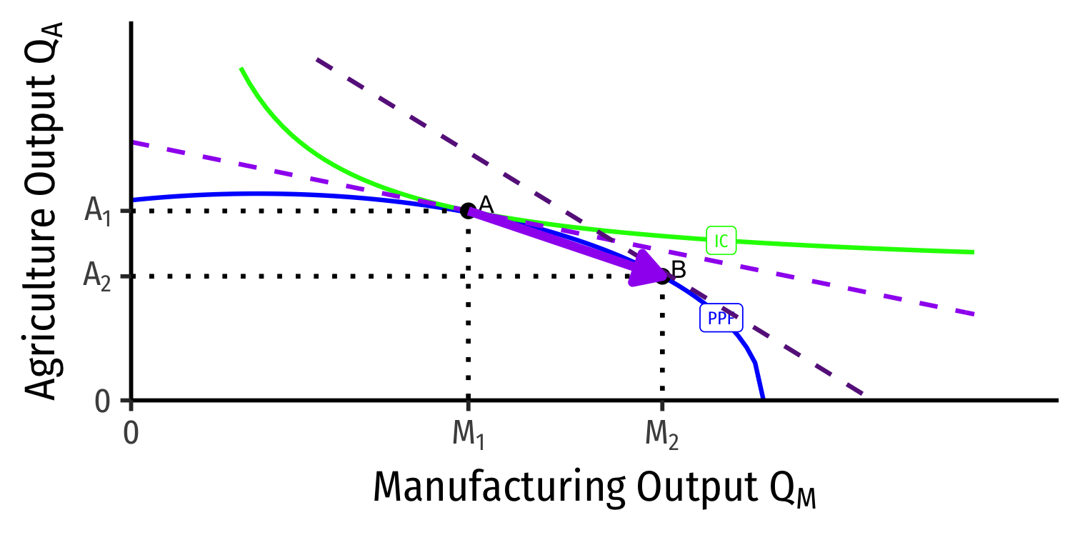 Every labor hour allocated to agriculture is a labor hour not allocated to manufacturing, and vice versa